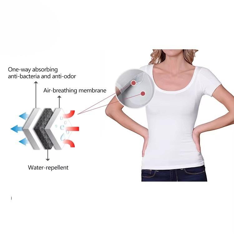 Made with a premium blend of 95% Lenzing™ Modal and 5% Spandex, imported from Austria, this tee feels ultra-soft, lightweight, and breathable. The fabric naturally wicks away moisture, while the integrated sweat-proof pads stay securely sewn in place so you never have to worry about stains, slipping, or odor, even after many washes.