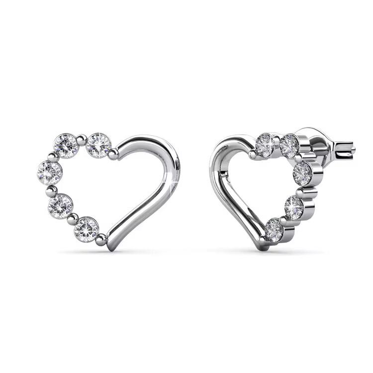 Featuring round brilliant-cut crystals in a claw setting, the heart shape adds a romantic touch to any outfit. Perfect for weddings, anniversaries, or gifting, these studs are a delicate yet elegant accessory for women.