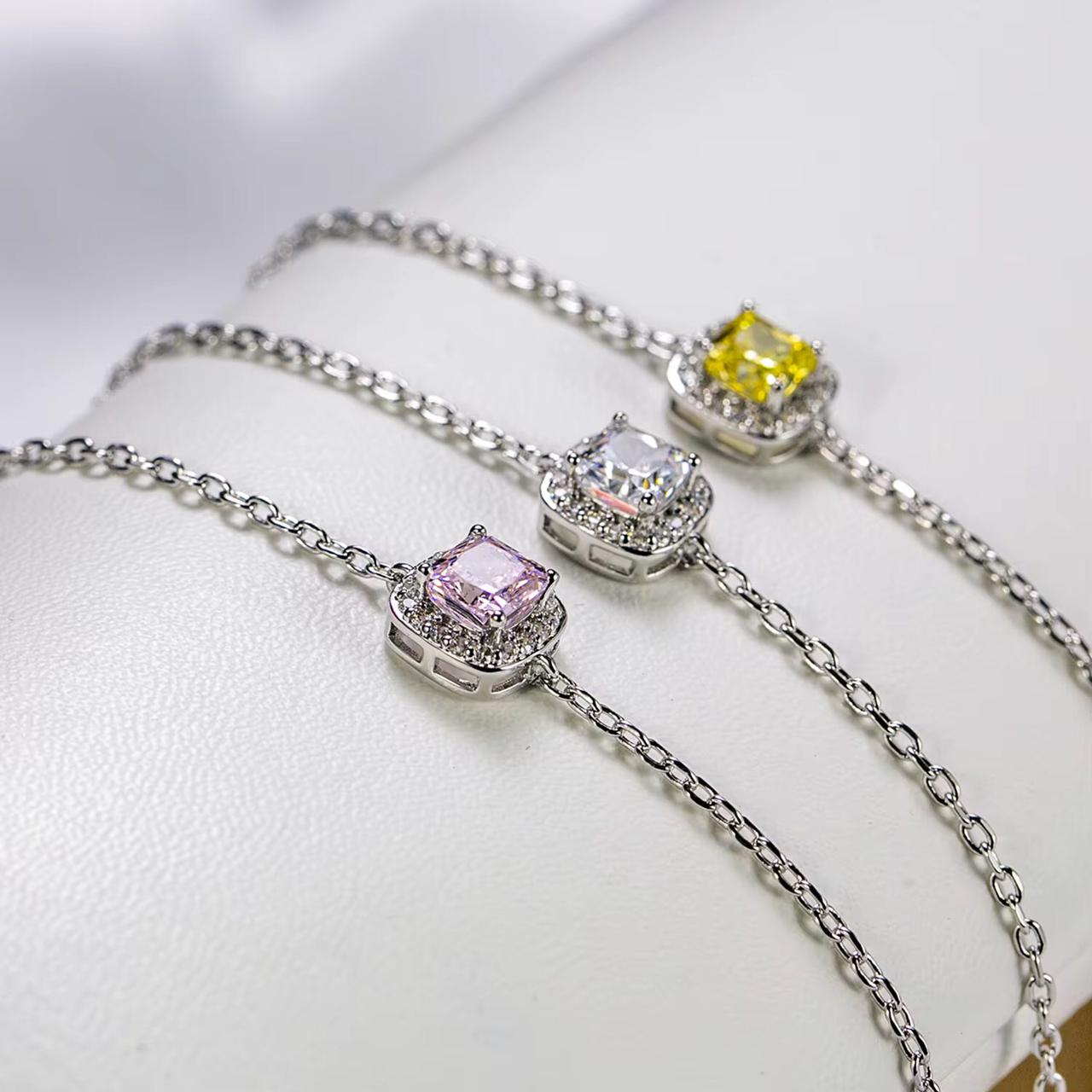 A trendy French retro tennis bracelet with sparkling high-carton diamonds. Available in platinum, 18K gold, or rose gold plating—perfect for anniversaries or elegant everyday style.
